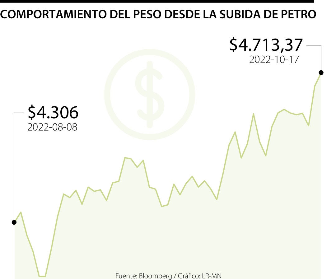 Es así como el viernes pasado, 14 de octubre, fue otro día de récord rotos. El dólar superó los $4.700 en las negociaciones intradía, con un máximo de $4.707. Cerró sobre los $4.636 en promedio.