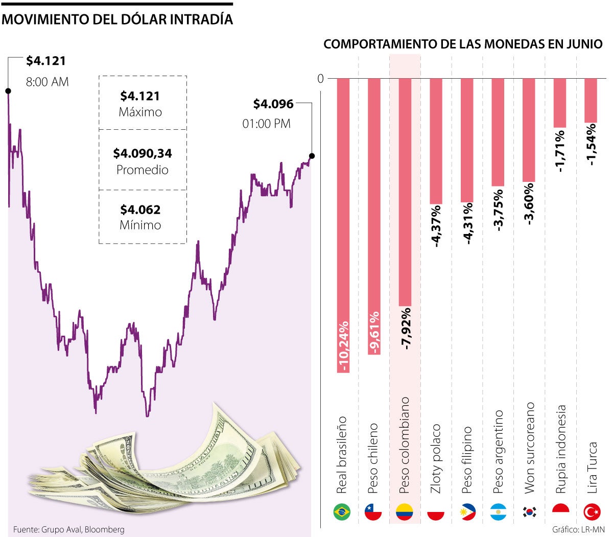 “Mis expectativas no son muy alentadoras. Creo que vamos a seguir operando por encima de $4.000, pero no más allá de $4.300. Una vez el mercado decante el tema de las elecciones presidenciales, sí deberíamos tener alguna corrección bajista, sobre todo por la subida de las tasas del Banco Central”, aseguró José Luis Hernández, trader de mesa institucional de Corficolombiana; y dijo que “estamos esperando el comunicado del Emisor, en el cual el banco haga algún tipo de intervención en el mercado cambiario, que posiblemente pueda afectarlo”.
