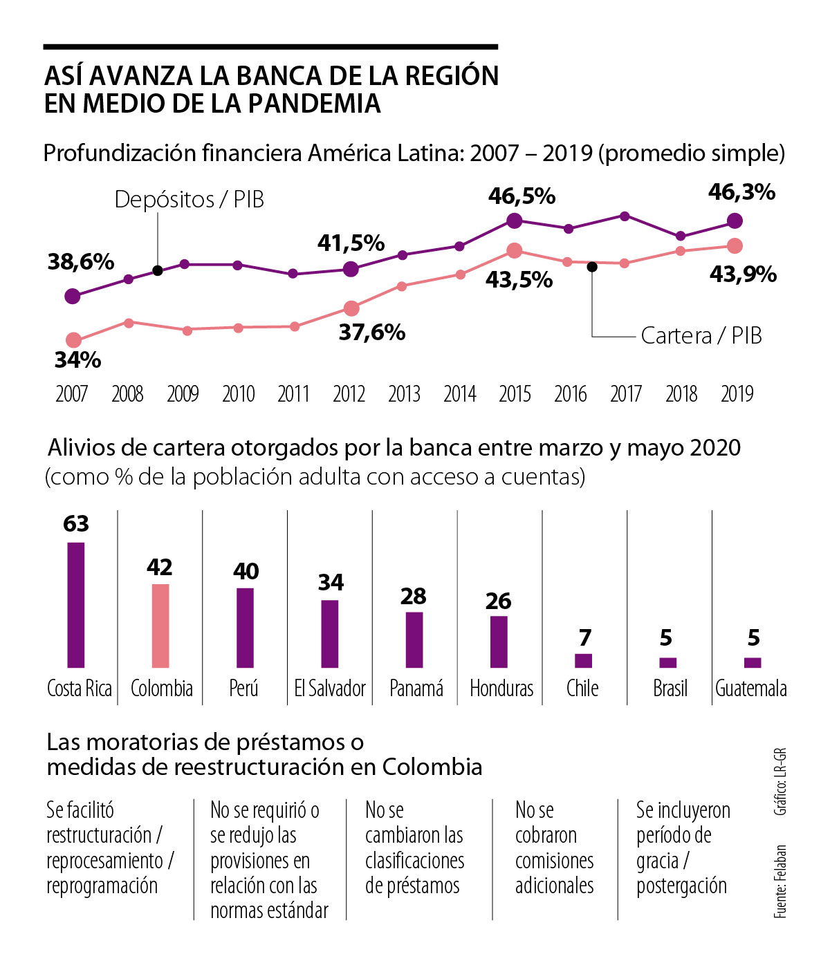 Entre los beneficios otorgados por las entidades bancarias a sus clientes por los canales digitales durante la pandemia en Colombia se destacan la “reducción o eliminación de los costos por transferencia y por consulta en las páginas de las entidades bancarias y mayor número de transacciones habilitadas por día”, según información compartida por Felaban que también detalló que en medio de la crisis desatada por la pandemia, el sistema local facilitó la reestructuración de las deudas, no se cambiaron las clasificaciones de préstamos, no se cobraron comisiones adicionales y se incluyeron período de gracia o postergaciones.