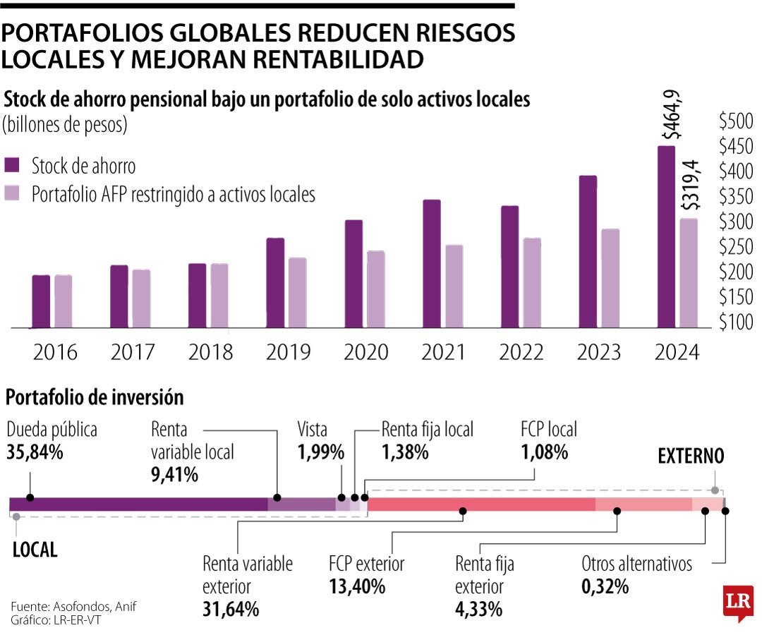 Hoy los fondos administran cerca de $500 billones, de los cuales alrededor de $250 billones están invertidos en el exterior. Traer $125 billones significaría repatriar la mitad de esos recursos.