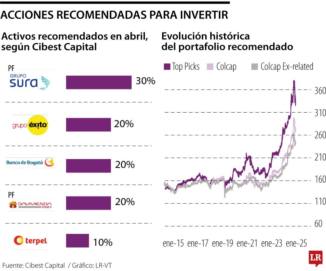 El portafolio recomendado por Cibest Capital está configurado por PF Grupo Sura, Grupo Éxito, Banco de Bogotá, PF de Davivienda Group y la acción de Terpel