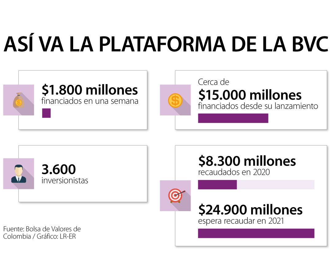 La plataforma de crowdfunding de la Bolsa de Valores de Colombia (BVC), a2censo, registró la cifra más alta de recaudo en una semana tras conseguir financiación por $1.800 millones en total.