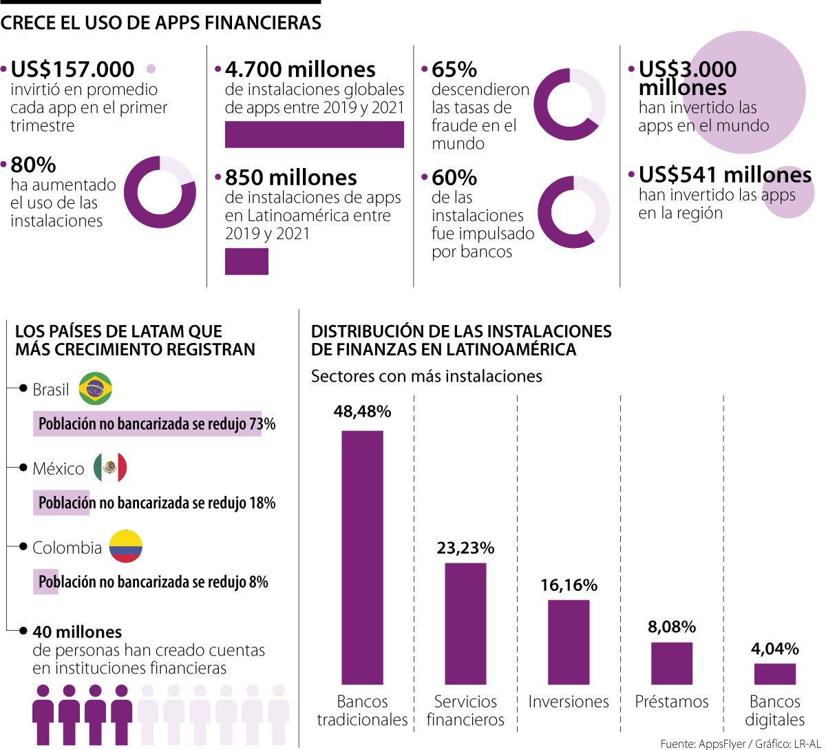 El número de instalaciones de aplicaciones financieras llegó a 4.700 millones en el mundo durante los dos últimos años. En Latinoamérica, se registraron 850 millones de descargas durante el mismo periodo.