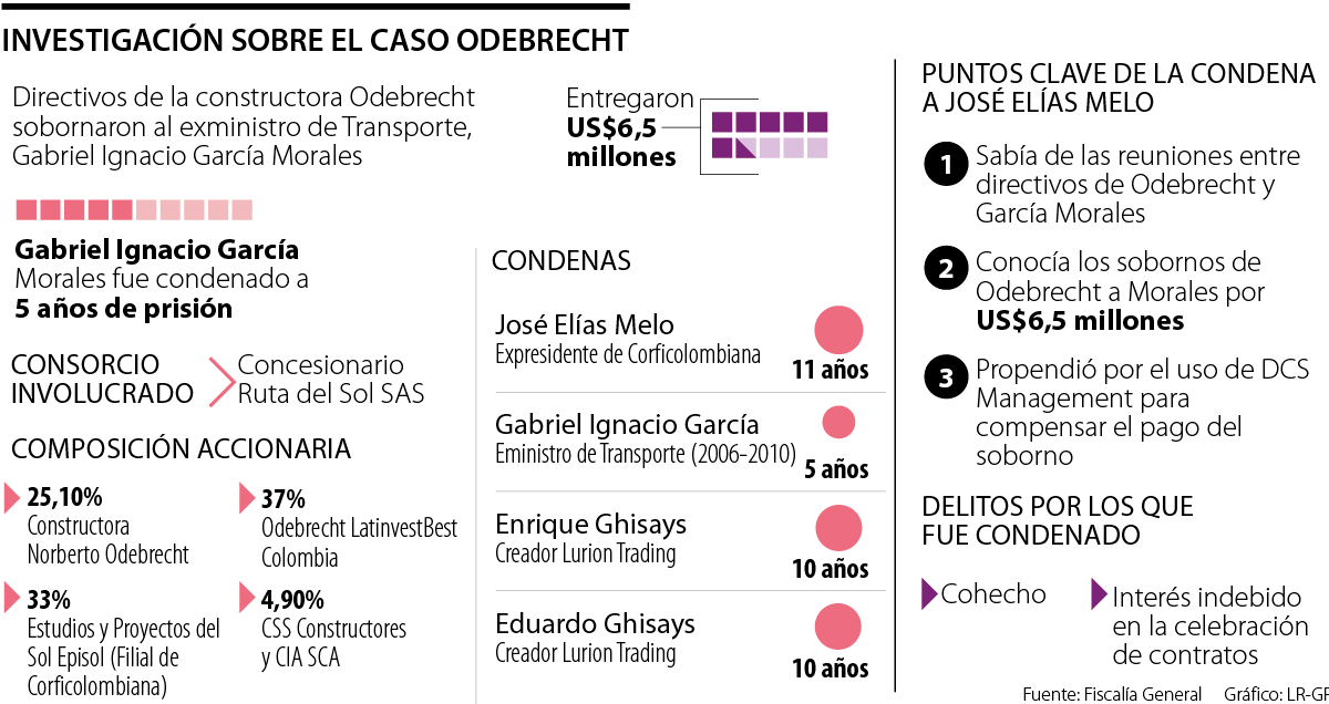 Cabe recordar que José Elías Melo fue condenado por la justicia colombiana a 11 años de prisión por los delitos de cohecho e interés indebido en la celebración de contratos por el pago de sobornos para la adjudicación del proyecto de la Ruta del Sol II.