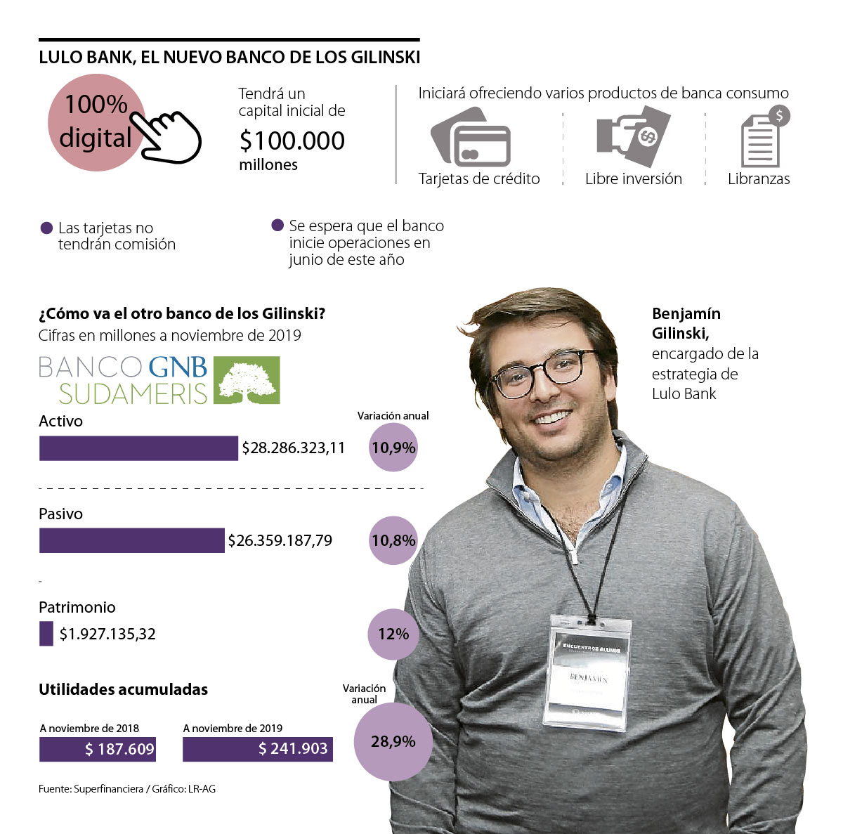 Lulo Bank fue financiado y estructurado a través del grupo financiero de los Gilinski, Gilex Holdings (del que también hace parte el banco GNB Sudameris), y se espera que comience a operar antes de terminar el primer semestre de este año, con un capital de inversión inicial de $100.000 millones.