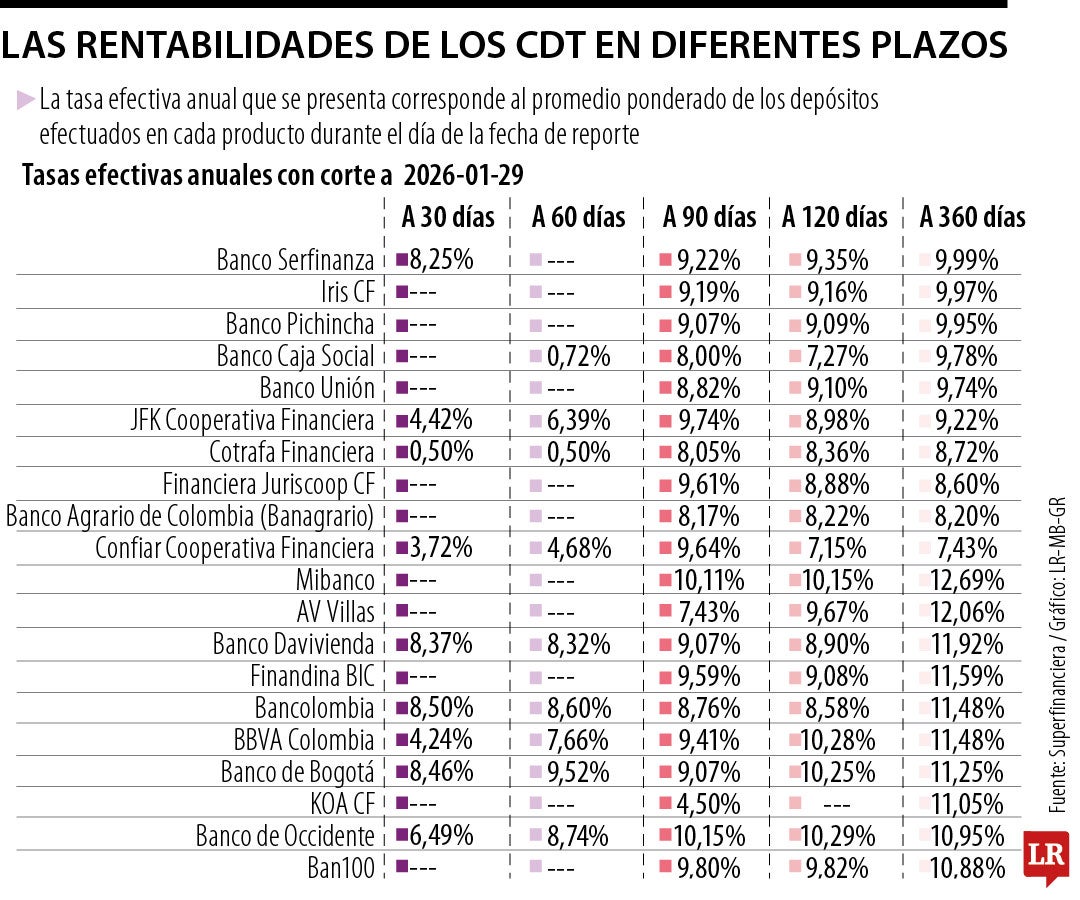Banco de Occidente, Banco de Bogotá, Bbva y Davibank, las entidades financieras con las mejores rentabilidades para invertir en cdt a un plazo de 120 días