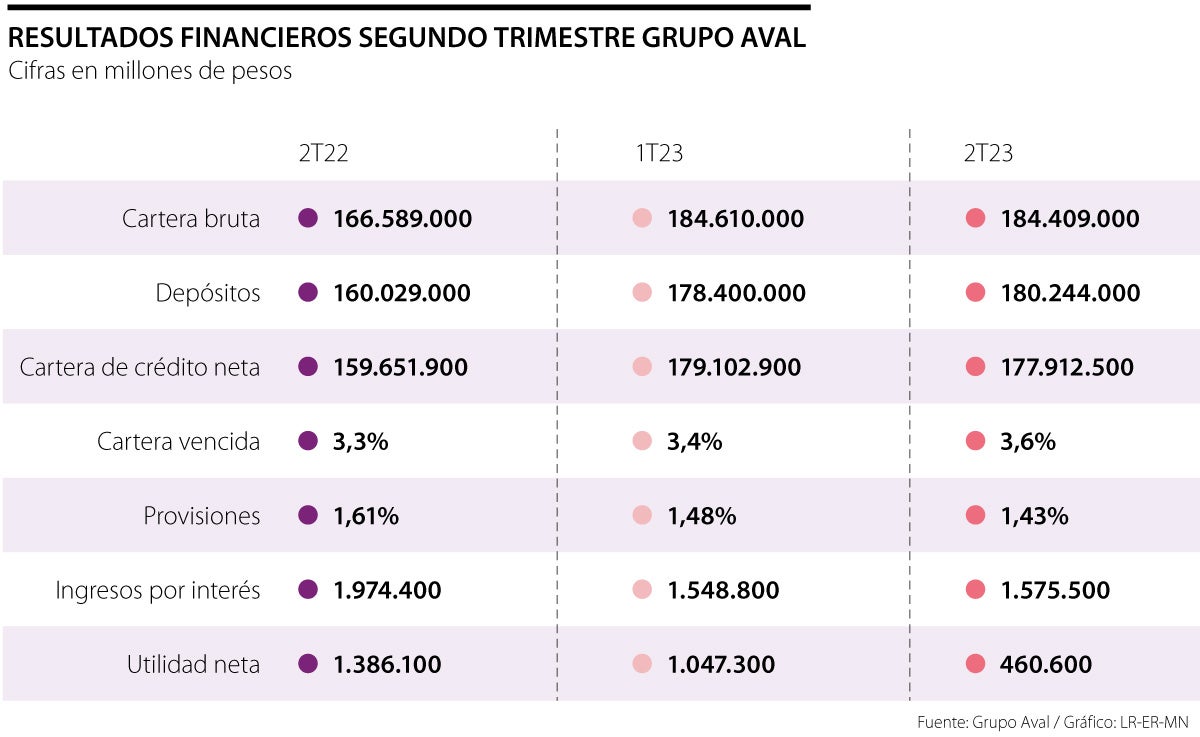 El Grupo Aval, principal conglomerado financiero del país, entregó sus balances luego del segundo trimestre del año. En resumen, si bien hubo un aumento de la cartera, se sintió una reducción en las ganancias de ese periodo si se compara con el segundo trimestre de 2022.