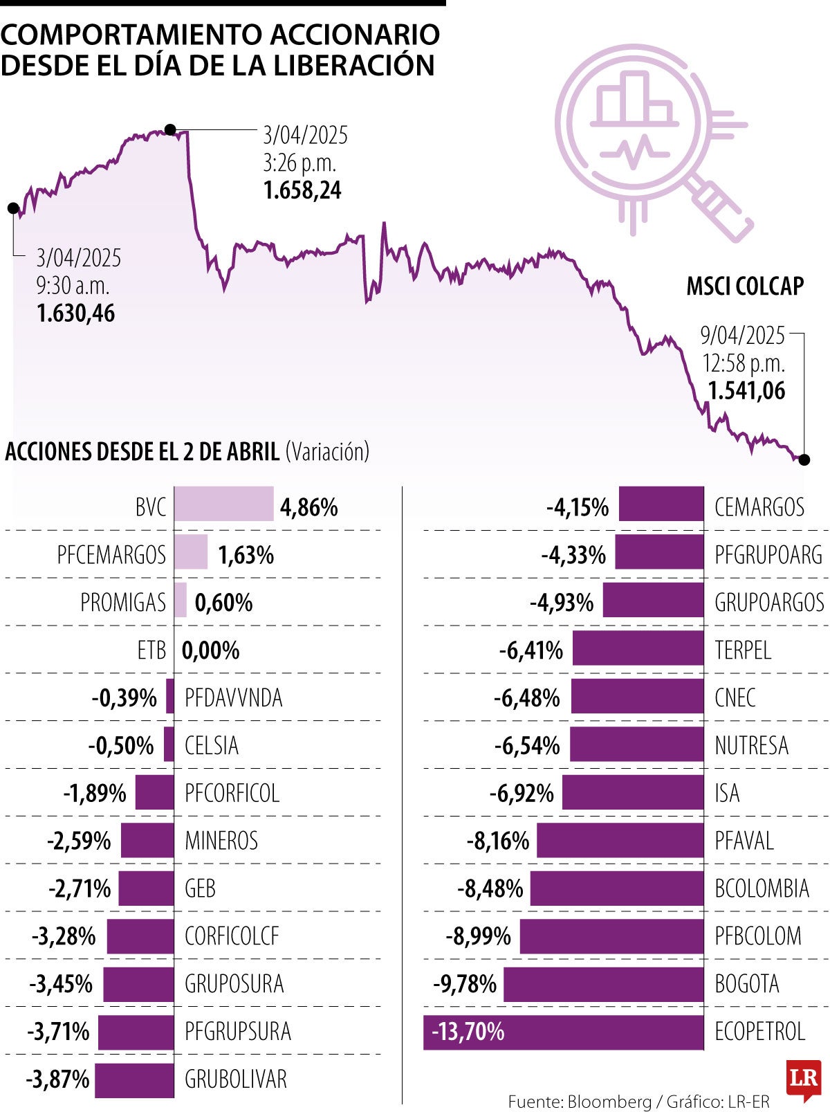 Luego de una semana del anuncio global de imposición de aranceles por parte del gobierno de EE.UU., los títulos en la BVC ya se han desvalorizado cerca de 7%