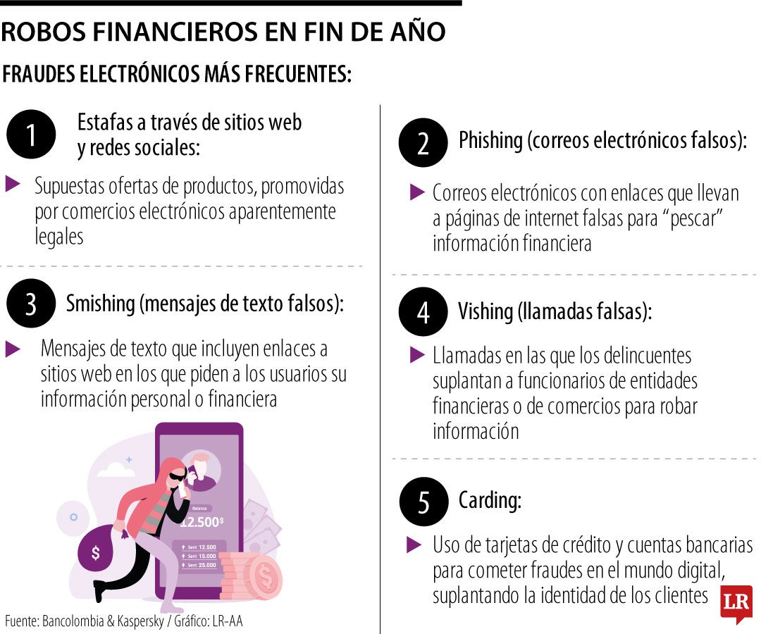 De acuerdo con Bancolombia, prácticas como estafas de ofertas o el phishing son actividades ilegales que suelen aumentar a final de año
