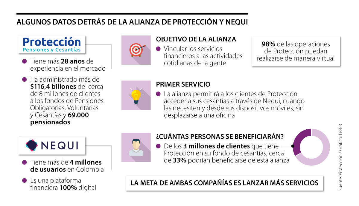 Protección y Nequi sellaron una alianza, en la que el fondo privado permitirá acceder a sus cesantías a través de la plataforma Nequi, sin necesidad de desplazarse a una oficina y realizando todo el proceso en la app.