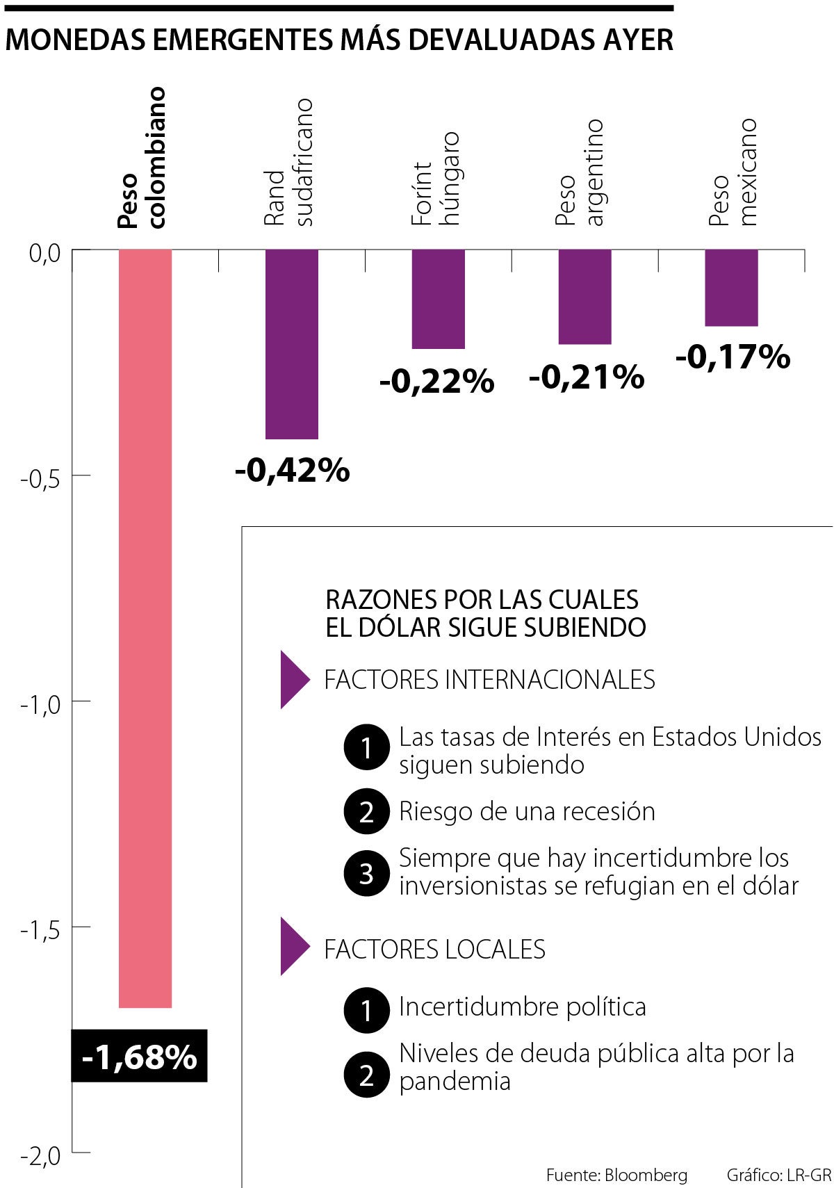 Estos resultados, según analistas, son consecuencia de varios factores acumulados. Por un lado está el contexto internacional con el aumento de las tasas de interés en Estados Unidos por parte de la Reserva Federal, para controlar la inflación. También están los riesgos de recesión. José Luis Hernández, trader de mesa de Corficolombiana, aseguró que “estamos a la espera de una recesión fuerte el próximo año”.