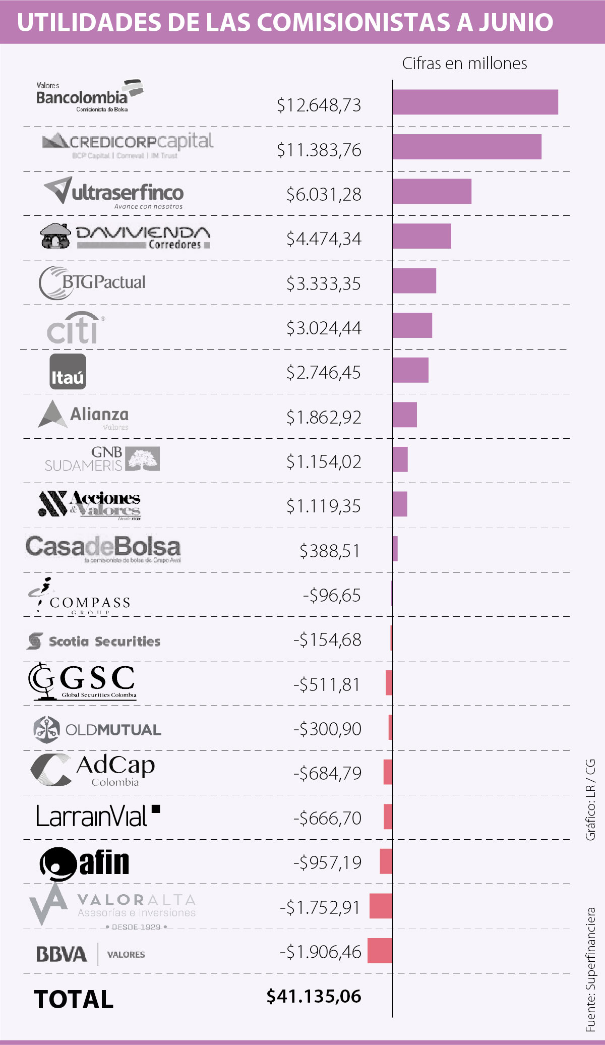 Detrás aparecen otras comisionistas de bolsa como Citivalores, con $3.024,44 millones; Itaú, con $2.746,45 millones; y Alianza Valores, con $1.862,92 millones.