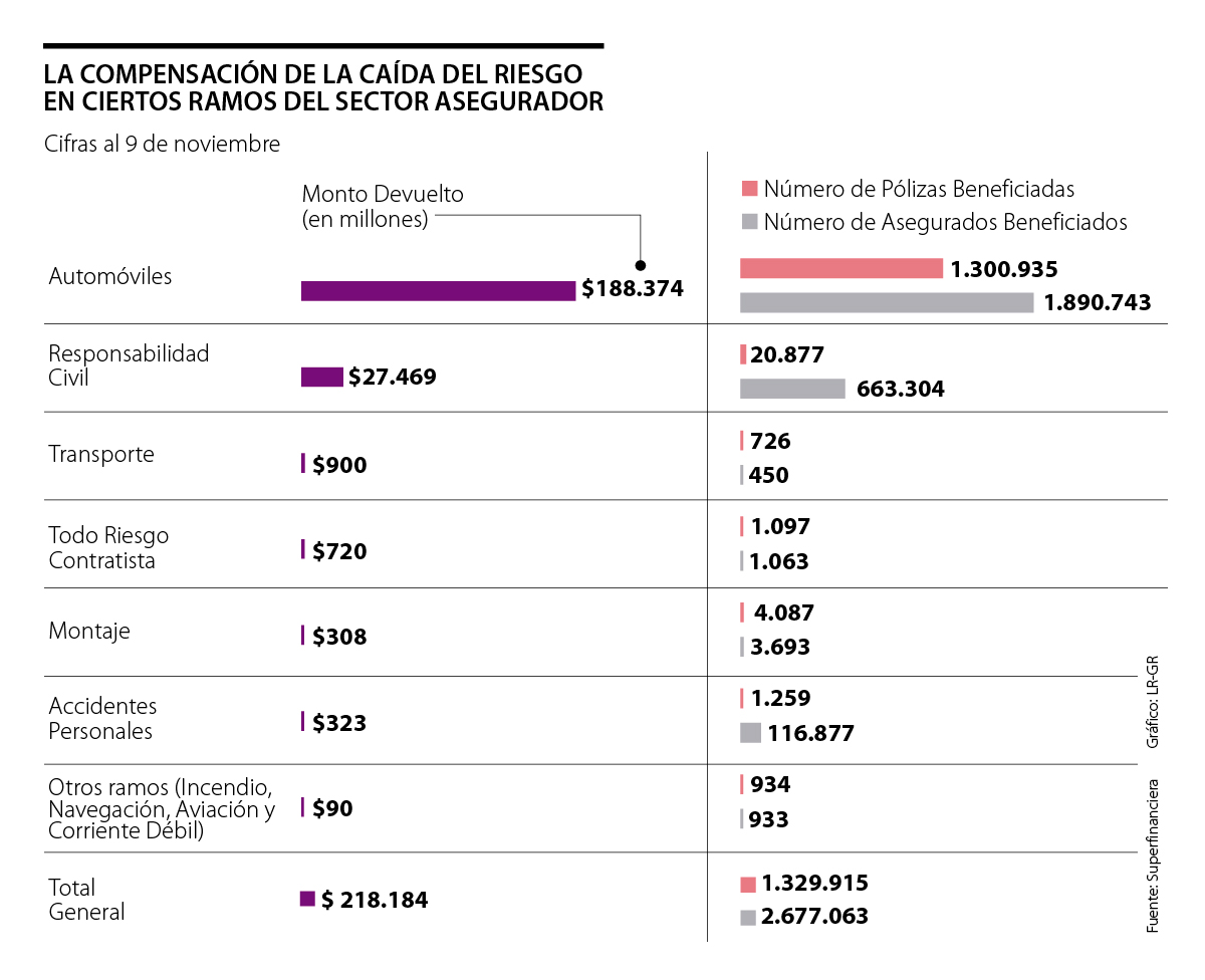 Al 9 de noviembre, las aseguradoras reintegraron $218.184 millones a clientes a los que a sus bienes asegurados se les redujo el riesgo. Esta medida benefició a 2,68 millones de asegurados que están ligados a 1,33 millones de pólizas.