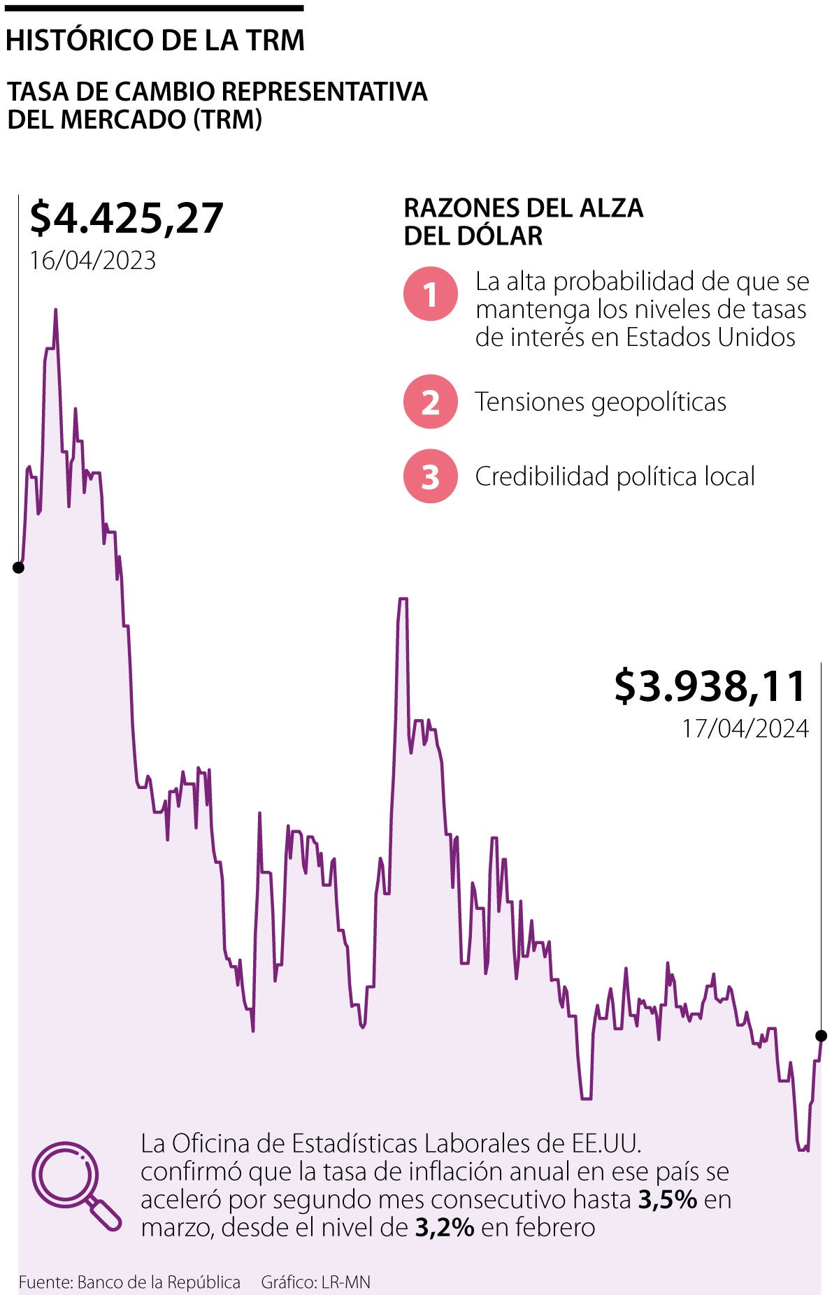 “Tenemos una situación internacional compleja, este conflicto puede agudizarse en los próximos días o semanas, y cuando ocurren esos eventos internacionales que pueden comprometer la paz mundial, lo que vemos es una apreciación del dólar a nivel mundial”, dijo Andrés Langebaek, director de estudios económicos de Grupo Bolívar.