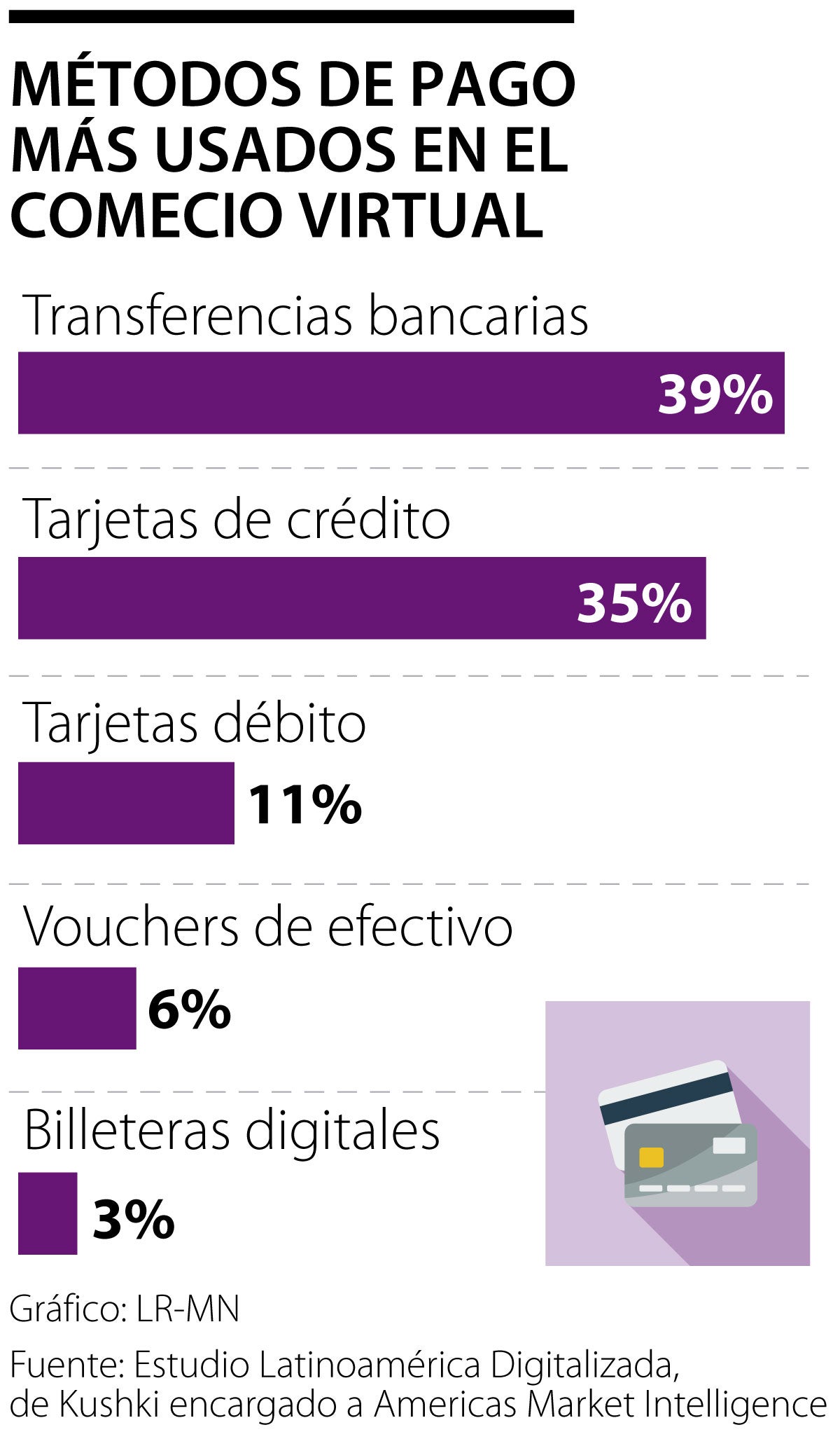 La participación que tienen las tarjetas de crédito en los pagos en e-commerce es de 35%, según el estudio de la compañía Kushki