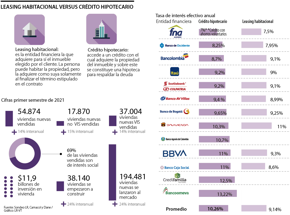 “Con los créditos hipotecarios, a diferencia del leasing habitacional que es bajo la figura de un arriendo, el bien lo adquiere el cliente, por lo que se incluye en su patrimonio y lo hipoteca a la institución financiera, por esto es que puede ser beneficiario de subsidios de vivienda que ofrece el Gobierno Nacional”, explicó Wilson Triana, experto y consultor en banca y seguros.