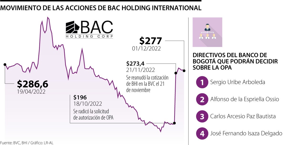 En la Asamblea General de Accionistas del Banco de Bogotá realizada a las 9:00 a.m de ayer autorizaron a la Sociedad en el marco de la Política de Conflictos de Interés del Conglomerado Financiero Aval para que participe en la Oferta Pública de Adquisición (OPA) sobre acciones de BAC Holding International (BHI), efectuada por Esadinco, entidad vinculada al Conglomerado Financiero Aval.