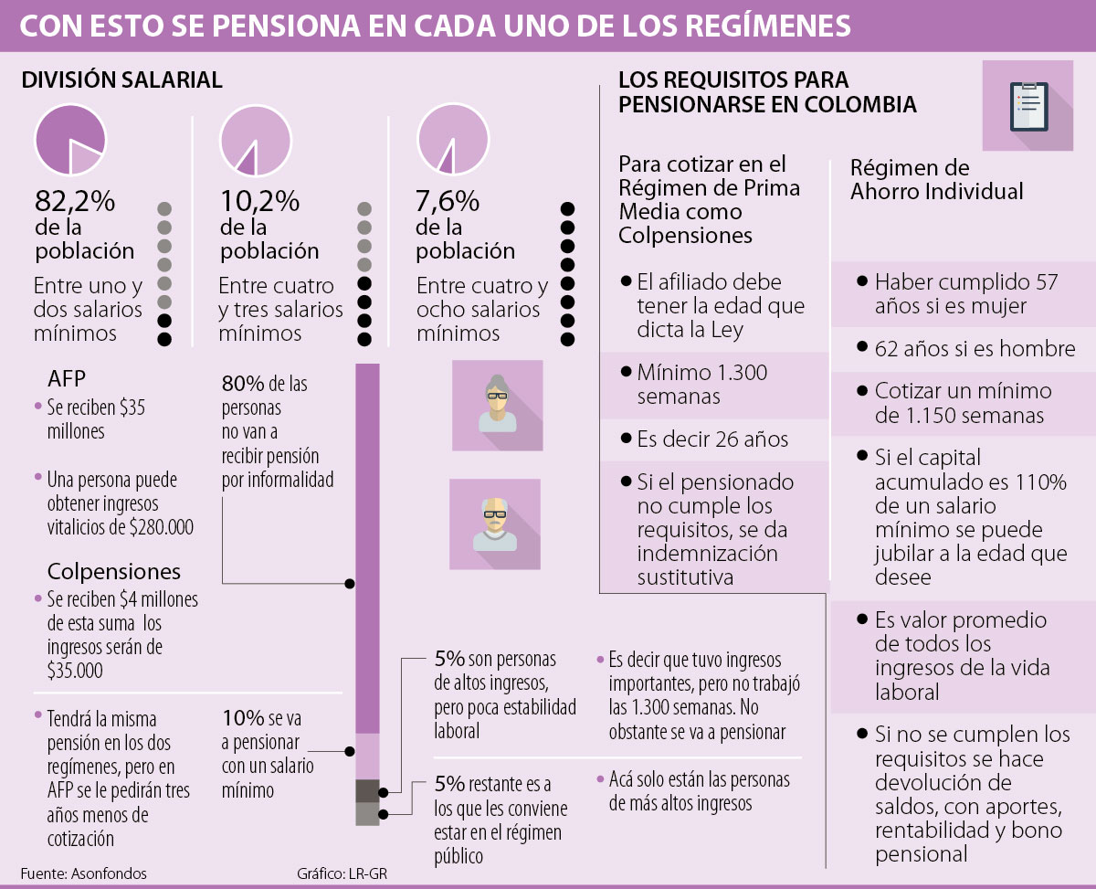 Acá hay que empezar entendiendo que de los 20 millones de afiliados que tiene el sistema pensional colombiano, es posible, según las estimaciones, que 80% no acceda a una pensión, por factores como la informalidad, que no les permitirá cumplir con las semanas mínimas requeridas o el capital necesario para pensionarse.