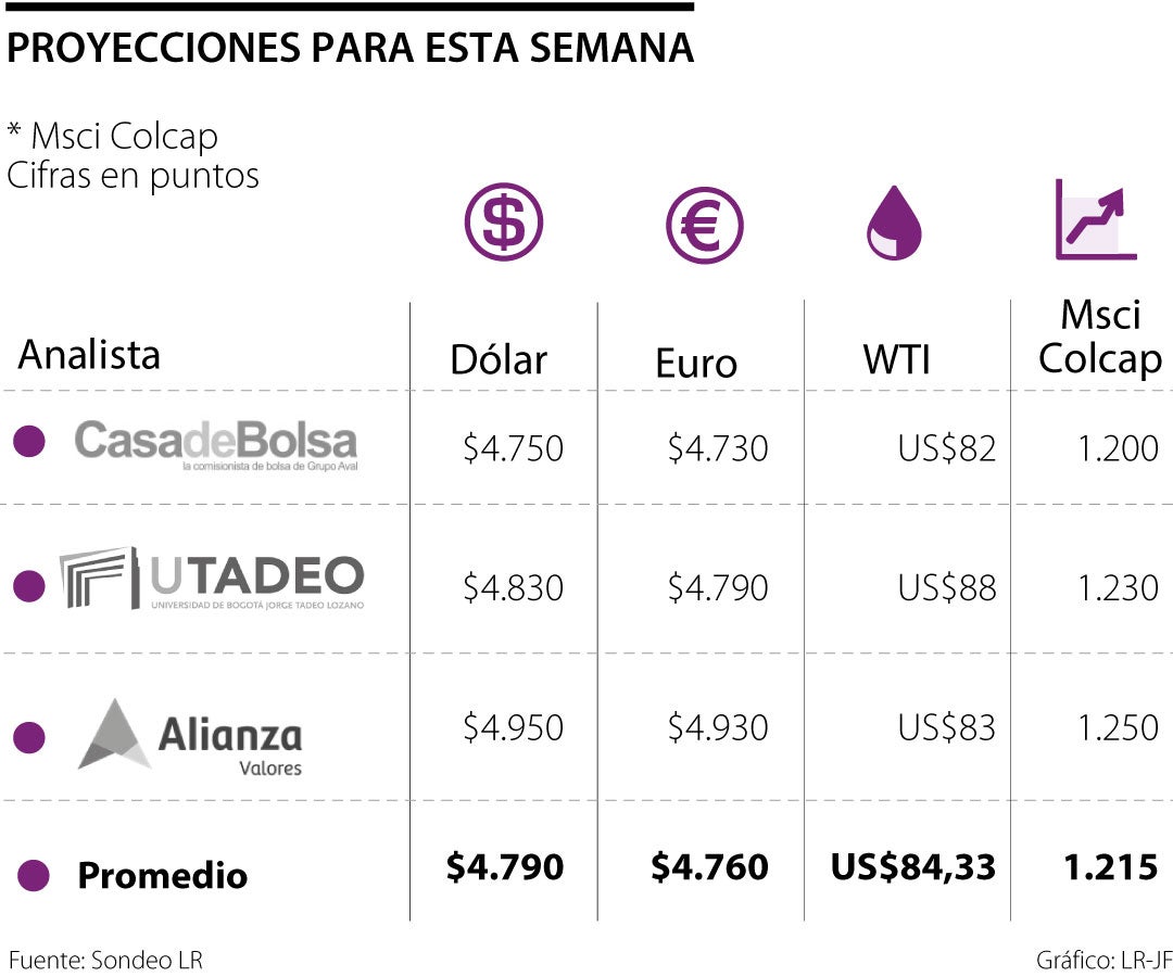 Mientras en el contexto local, el deterioro de la confianza en el mercado amplificó la depreciación de la moneda colombiana. A pesar de todo esto, los analistas proyectan que esta semana el billete verde bajará de precio, alcanzando un promedio de $4.790 y, así, el peso se apreciará. Aunque hay expertos que no descartan llegar a los $5.000 en las próximas semanas.
