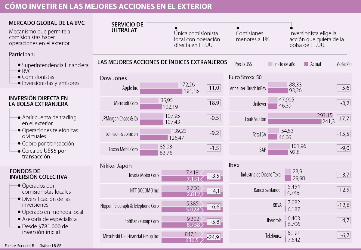 El gran momento de las compañías tecnológicas, la recuperación de la economía estadounidense y la intención de la industria local de incrementar la inversión en fondos colectivos, son algunos de los principales puntos que hacen que las acciones del extranjero sean cada vez más apetecidas, pero ¿cómo invertir? y ¿cuánto cuesta?, son preguntas que deben resolver las personas antes de aventurarse a invertir.