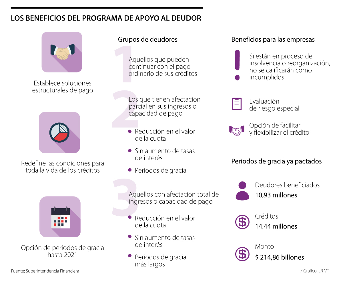 Además de la opción de expandir los periodos de gracia o prórrogas en los pagos, los deudores podrán redefinir o reestructurar sus créditos sin más intereses y cuotas más bajas, dependiendo de la afectación en sus ingresos.