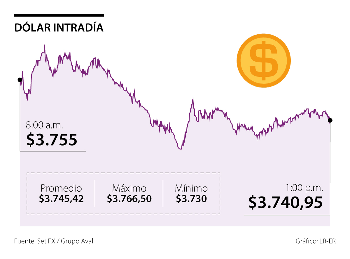 La divisa abrió la jornada con un precio de $3.755 y su cierre fue de $3.740,95. El precio mínimo que se registró en la plataforma Set-Fx fue de $3.730, mientras que el máximo fue $3.766,50. El monto negociado durante la jornada fue de US$609,63 millones en 1.322 transacciones.