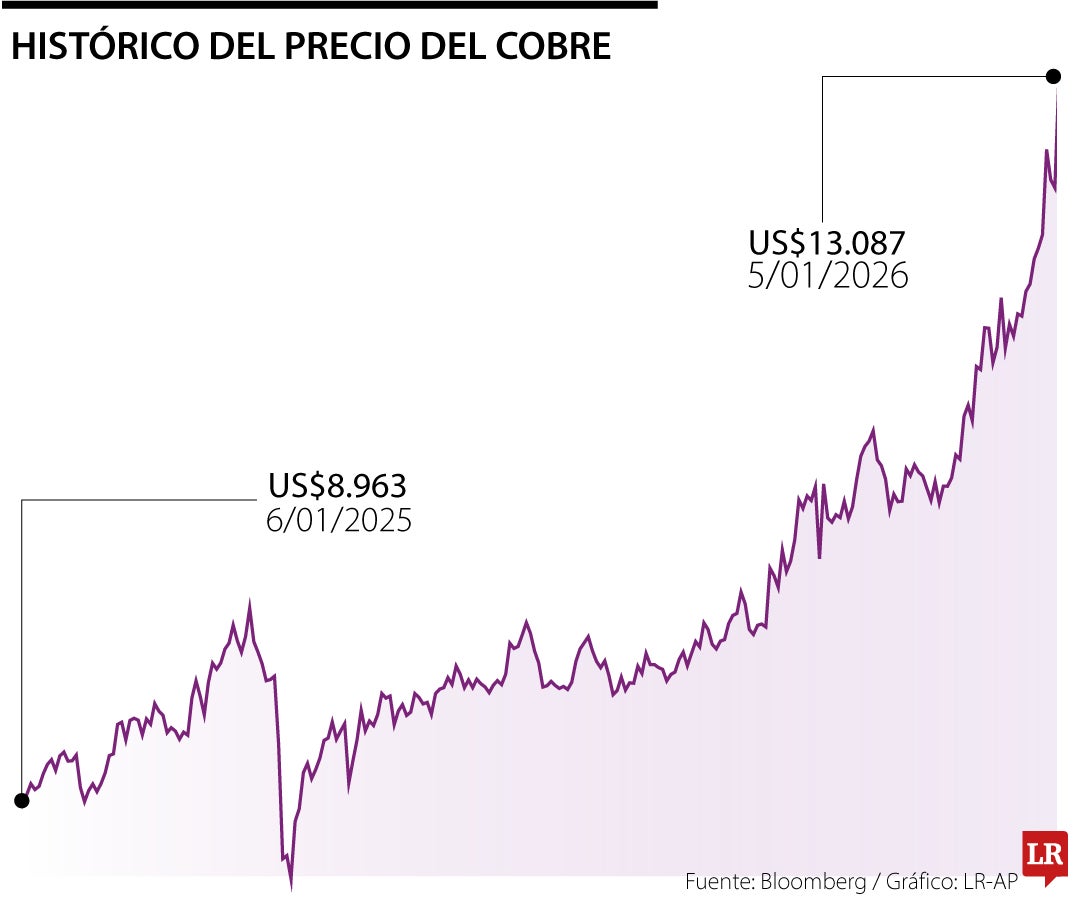 El cobre de referencia a tres meses en la Bolsa de Metales de Londres (LME) Cmcu3 llegó a subir 3,1%, a US$13.487,5 la tonelada