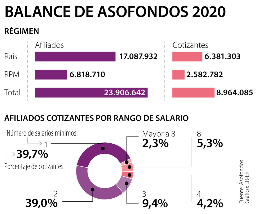 Sobre la edad de los afiliados, Asofondos reportó que cerca de 83% de los cotizantes es menor de 45 años, mientras que la edad promedio es 35 años.