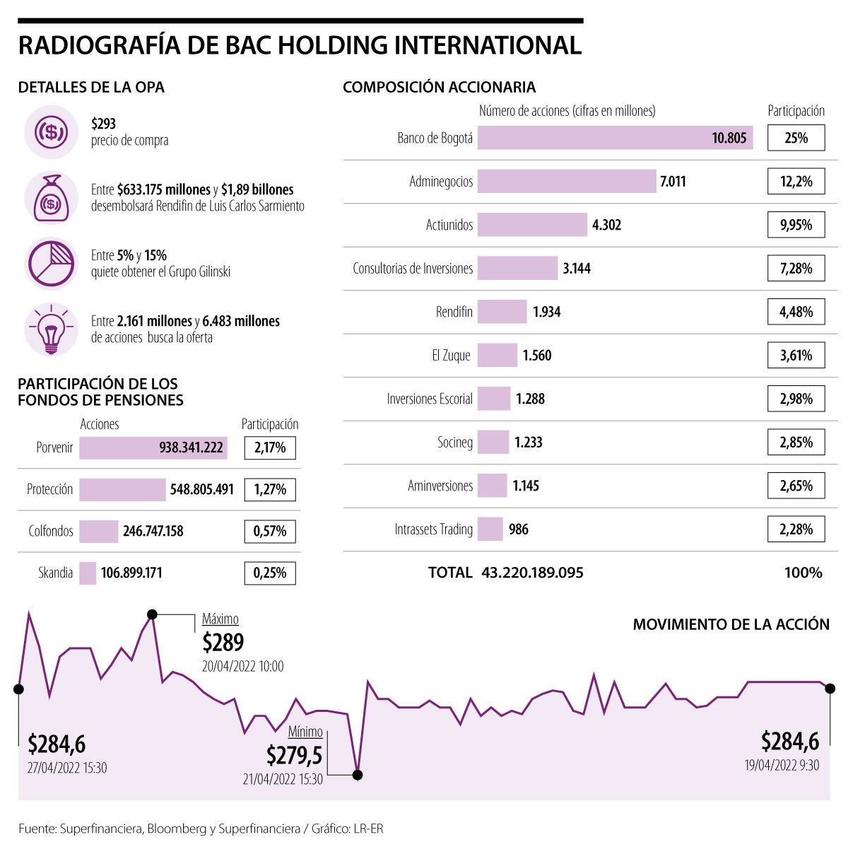 Con la llegada de BAC Holding International (BHI) a la Bolsa de Valores de Colombia(BVC) se presentó una OPA durante los primeros minutos de negociación de la acción. Horas más tarde se conoció que, quien se encontraba detrás de dicha intención de compra era Rendifin, dueña de 4,48% de dicha compañía y dominada por Luis Carlos Sarmiento Angulo, dueño del Grupo Aval.