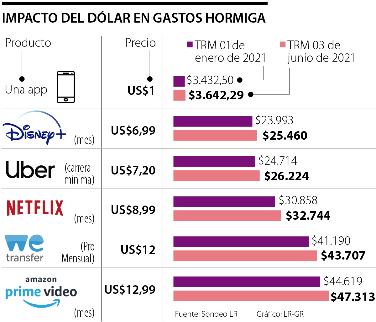 Los gastos hormiga son los que más se han visto impactados por el movimiento de la moneda. Pese a que varios de los cobros ya se realizan en pesos, tal como sucede con las carreras de Uber o la suscripción a Netflix, algunos de los servicios a los que puede acceder un colombiano se cobran en dólares.