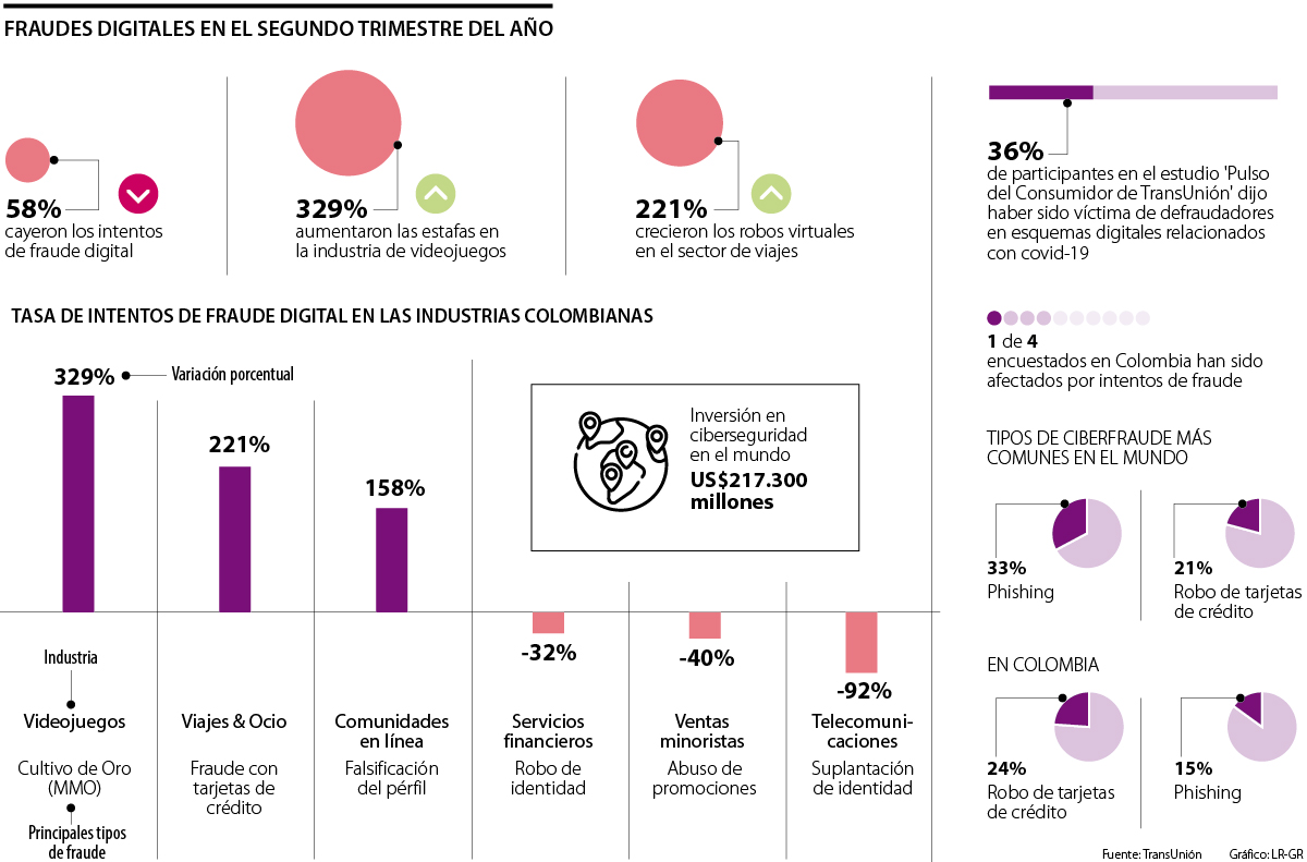 Manuel Piñeros, gerente senior de Soluciones de Fraude para América Latina de TransUnion, dijo que “es bastante común que, en poco tiempo, los defraudadores digitales cambien su enfoque de una industria a otra, pues tienden a buscar sectores que pueden estar experimentando grandes crecimientos en transacciones. En este segundo trimestre del año, a medida que los países comenzaron a abrir restricciones por el covid-19, se evidenció la falta de ciberseguridad en otros sectores que no se habían contemplado”.