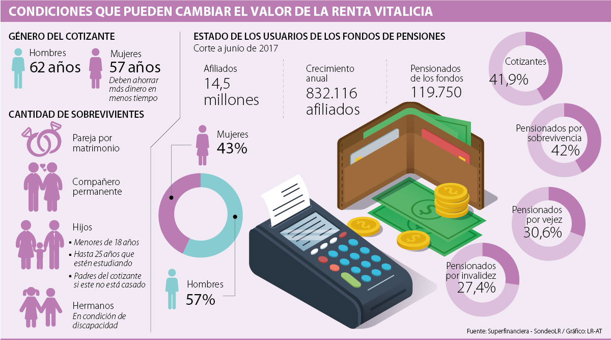 Esto se debe a que luego de haber logrado su jubilación, si la persona elige el esquema de retiro de renta vitalicia, que es el dinero que llegará mensualmente a su cuenta, este monto se calcula con base en variables como los hijos que usted tiene, e incluso, si se ha vuelto a casar o hasta su género.