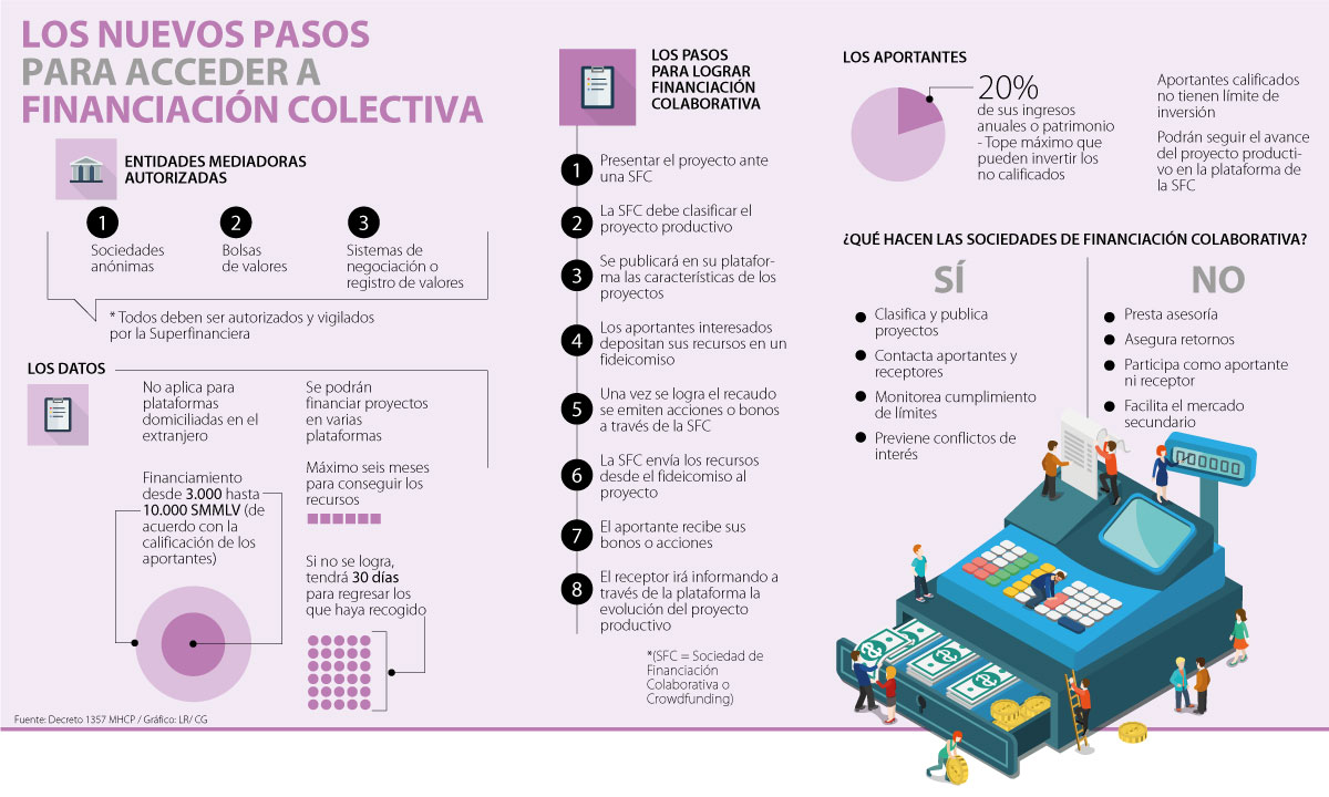 El Decreto 1357, firmado el pasado 31 de julio, establece el crowdfunding como una nueva actividad del mercado de valores, lo que implica que la nueva forma de conseguir financiamiento por medio de esta dinámica a nivel nacional implicará la entrega de bonos o acciones a los inversionistas interesados en apoyar proyectos productivos por medio de sociedades de financiación colectiva.