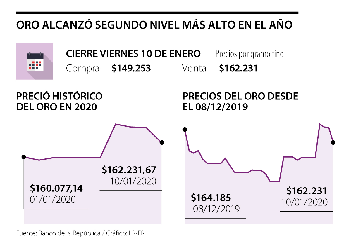 Por ejemplo, solo en Colombia, durante la semana pasada, el precio de venta por gramo fino de oro cerró en $162.231, el segundo nivel más alto en lo corrido de este año, pues en las tres jornadas anteriores se había mantenido en promedios de $164.000.