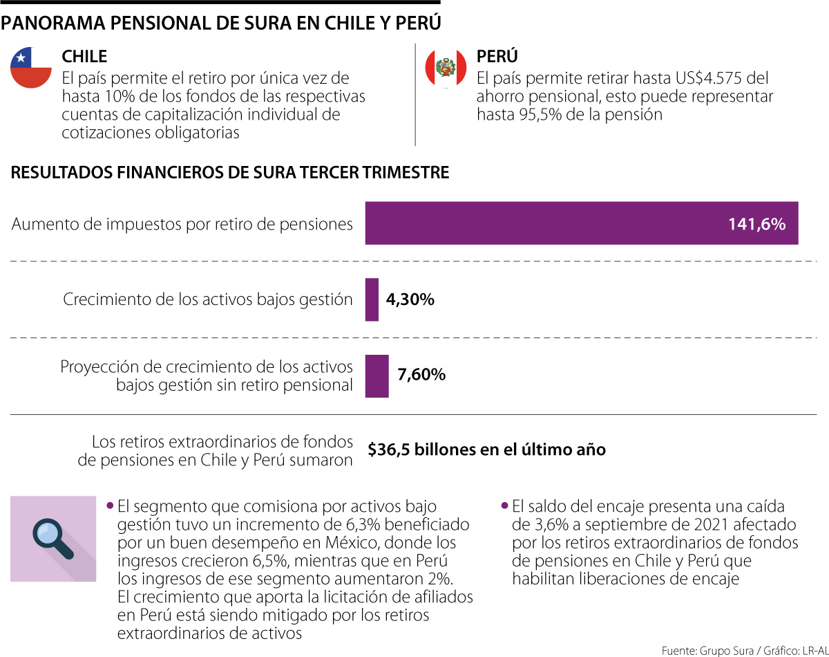 Sura aseguró que los retiros extraordinarios no tienen un impacto en ingresos por comisiones en el negocio de Chile, que comisiona por base salarial, mientras que en Perú el impacto está acotado al segmento que comisiona por activos bajo gestión. En este país el impacto fue 15% del total de ingresos.