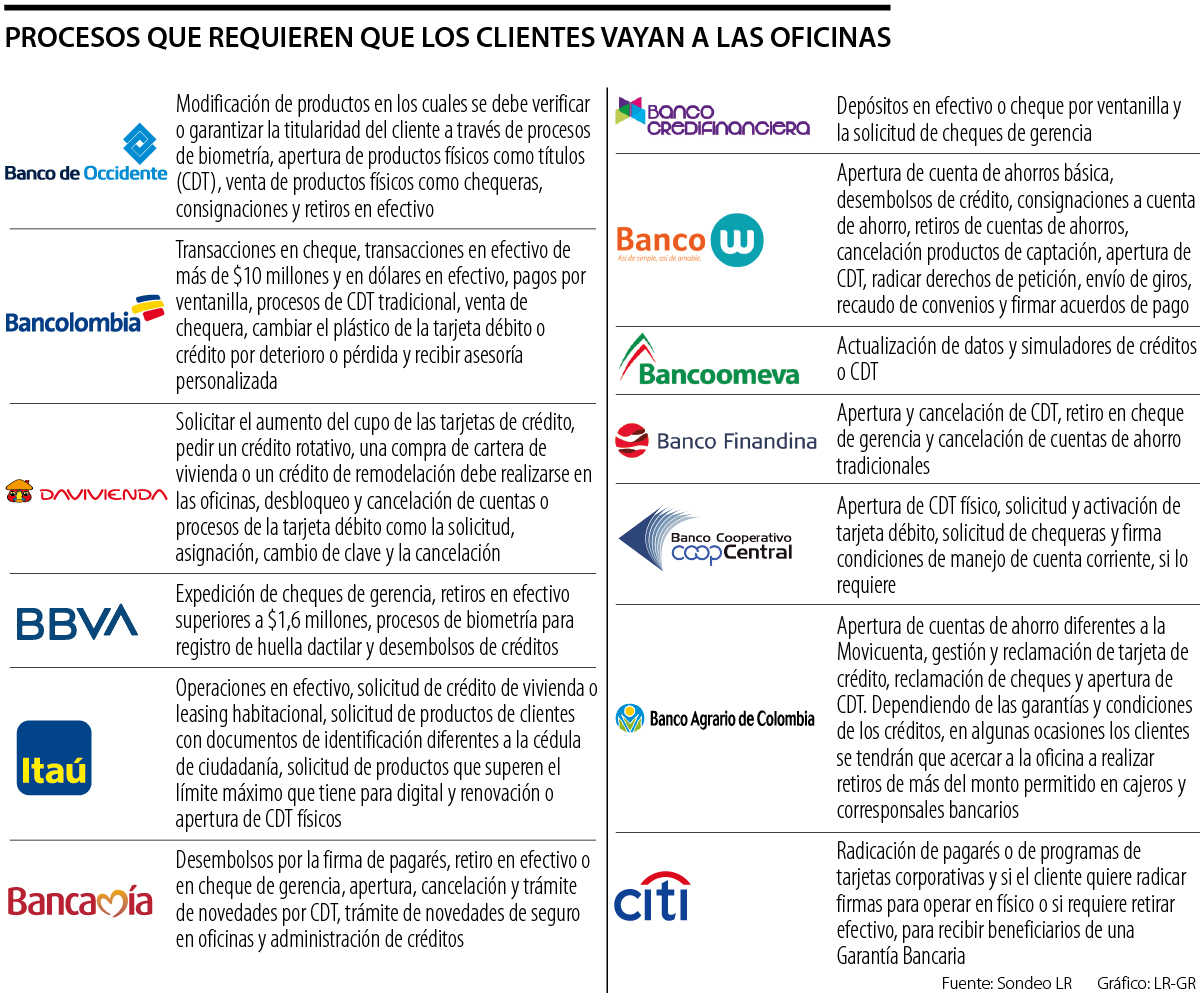 La renovación de CDT y los desembolsos de cheques son algunos de los procesos que requieren que los clientes vayan a las oficinas de las entidades bancarias
