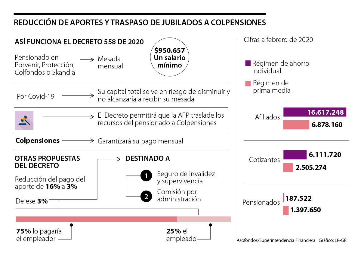 La expedición del Decreto 558, con el que se reducen los aportes pensionales de 16% a 3% y además obliga a las Administradoras de Fondos de Pensión (AFP) a trasladar los recursos de sus jubilados por retiro programado a Colpensiones, ha generado descontento entre los fondos privados, pues afirman que no era necesario hacerlo.
