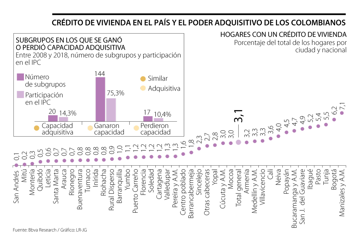 Manizales, y su área metropolitana, Bogotá y Tunja son las ciudades donde los créditos de vivienda tienen mayor penetración entre sus ciudadanos. En la capital del departamento de Caldas, 7,1% de los hogares tiene uno de estos productos, mientras que este porcentaje en la capital del país es de 6,2% y en la urbe más importante de Boyacá es 5,5%.