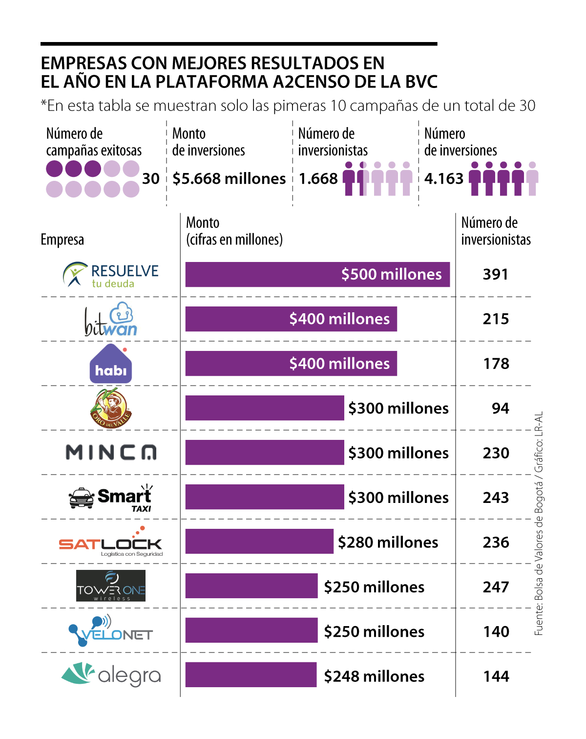 Este listado lo completan 25 empredimientos más que lograron inversiones de entre los $100 millones y $500 millones.