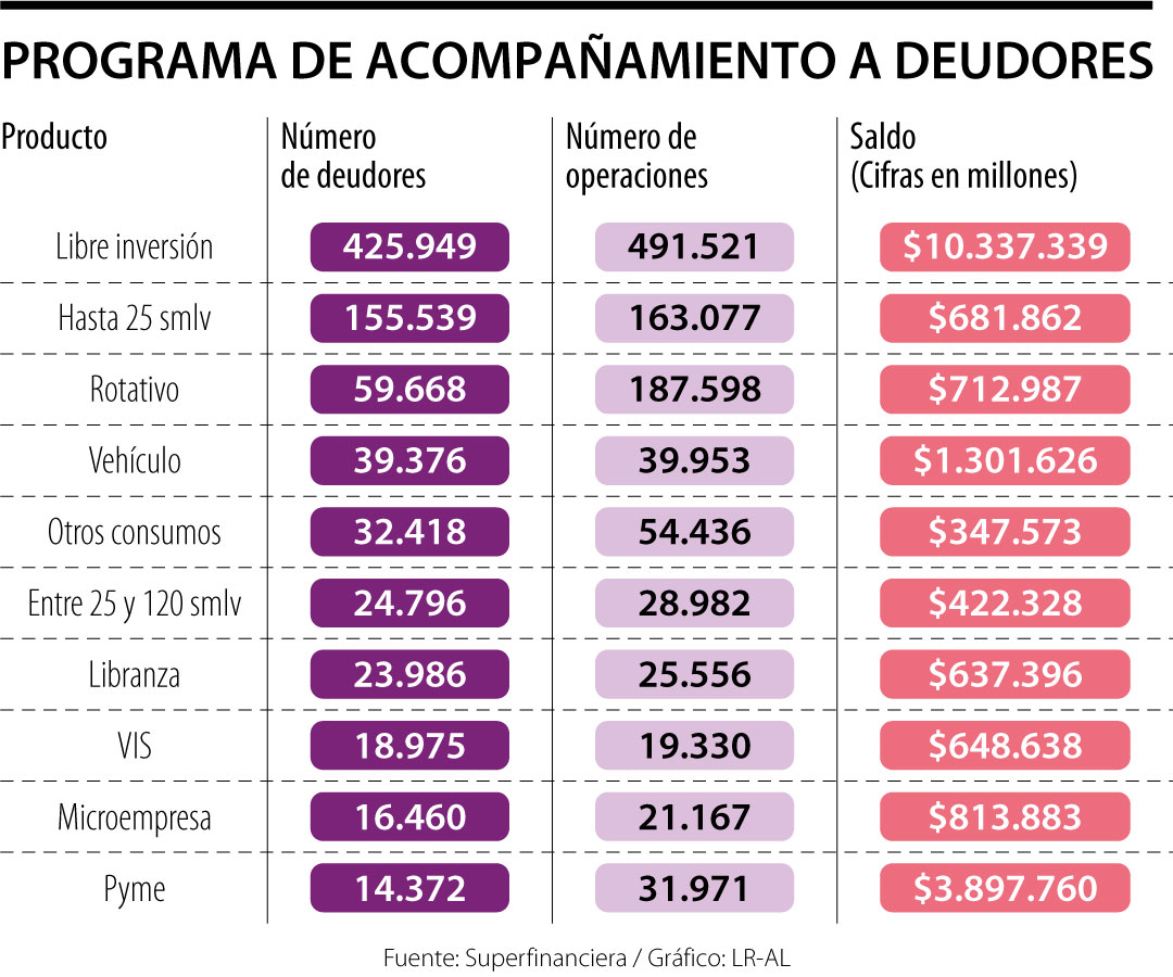 Con corte al 8 de septiembre, la Superintendencia Financiera de Colombia (SFC), dio a conocer que más de 2,20 millones de deudores redefinieron sus créditos por un valor de $37,1 billones a través de su Programa de Acompañamiento a Deudores (PAD).
