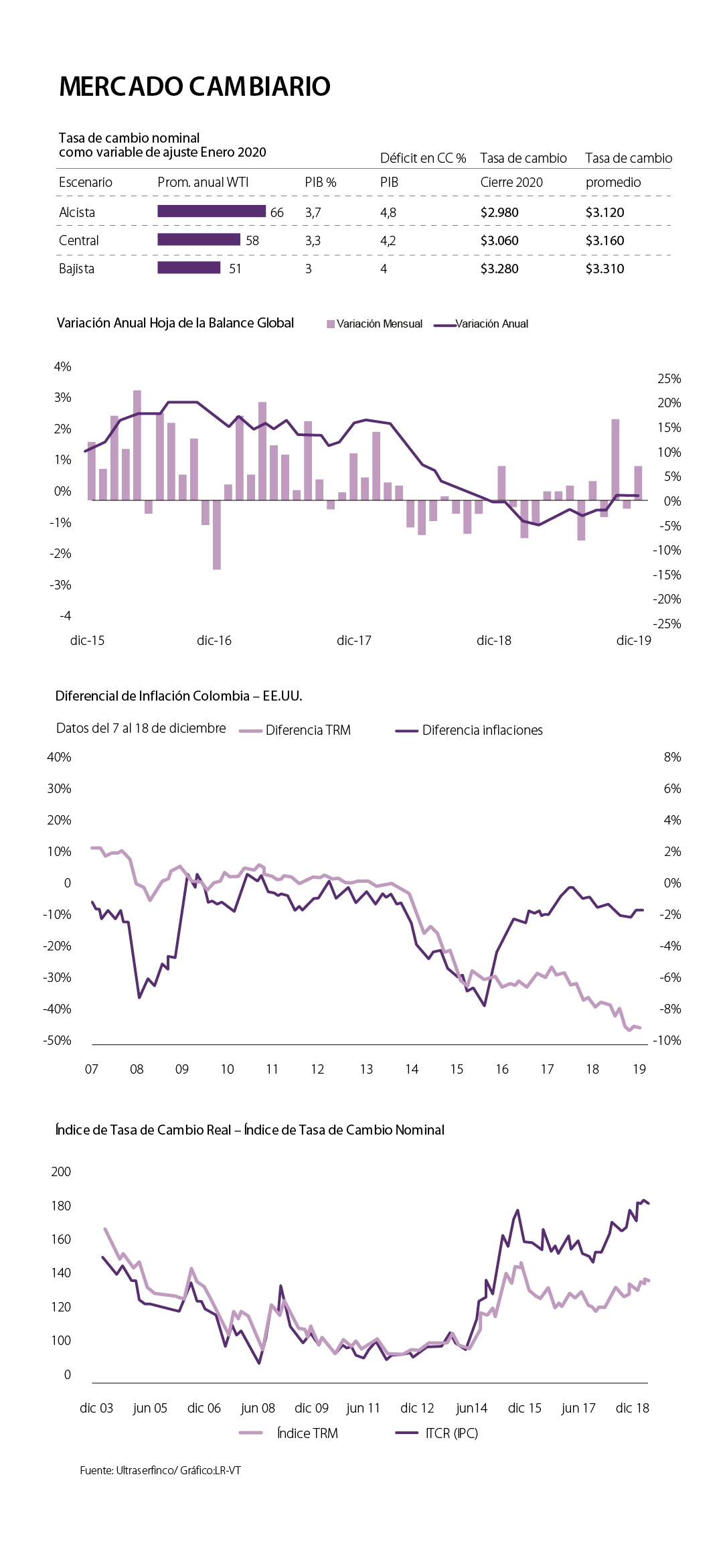 Para Colombia, específicamente, Ultraserfinco afirmó que el tipo de cambio en el país "cerró el 2019 en un precio cercano al observado hace un año, de manera que a pesar de la volatilidad observada durante los último meses, la devaluación fue inferior a 0,5%".