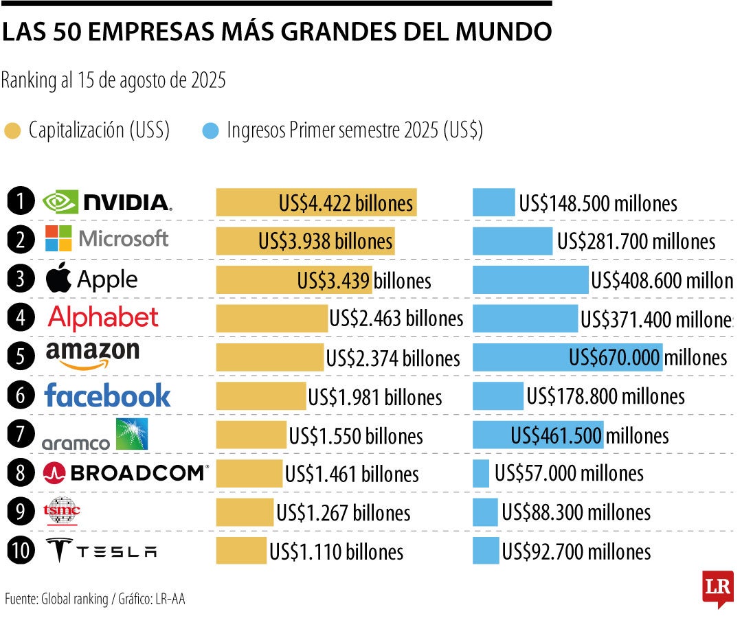 Estas empresas suman una capitalización bursátil de US$21 billones, valor que concentra una proporción muy grande del valor total de las empresas en los mercados bursátiles a nivel global.