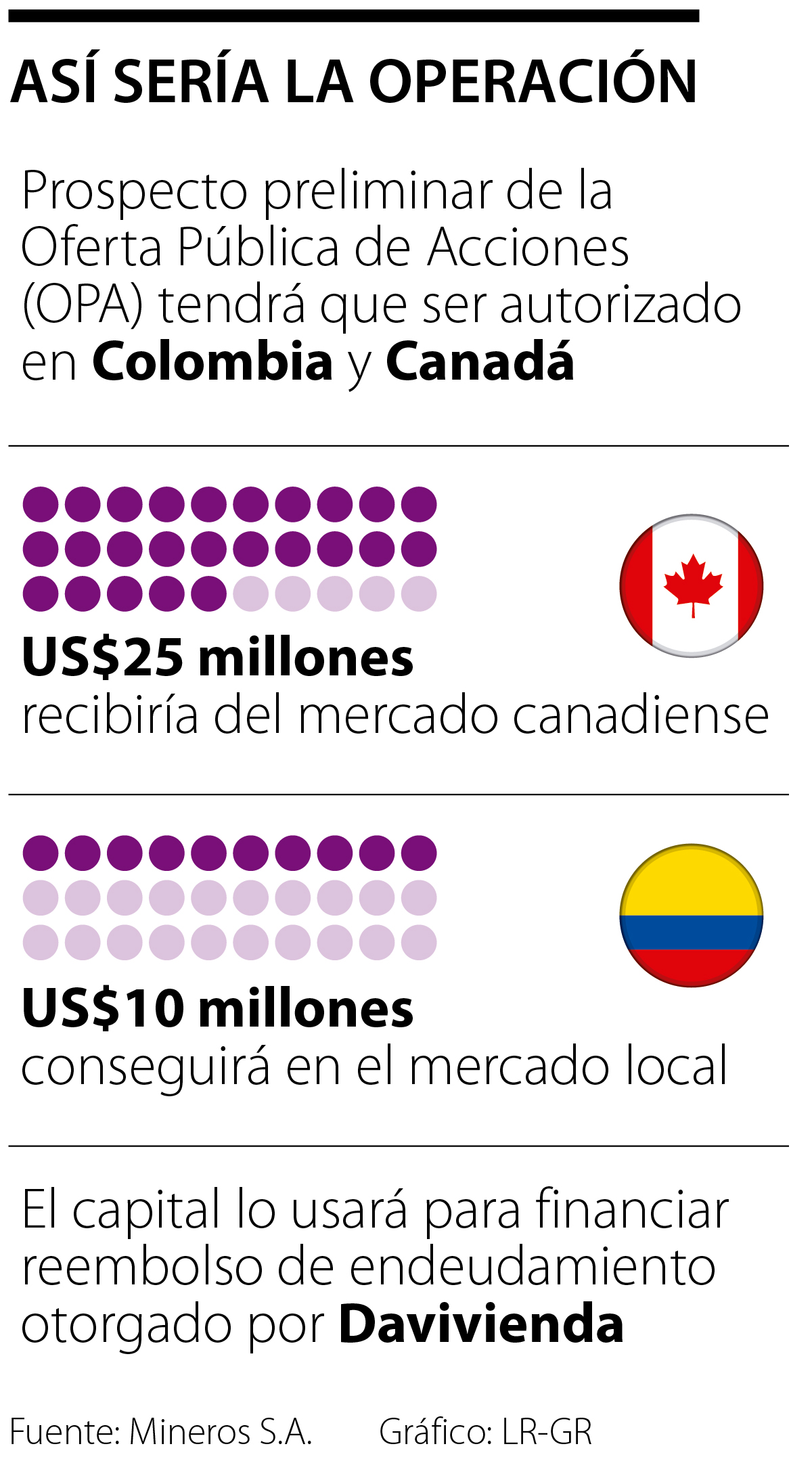 Los ingresos brutos de la oferta canadiense serán de US$25 millones y los ingresos brutos de la oferta local sean de US$10 millones