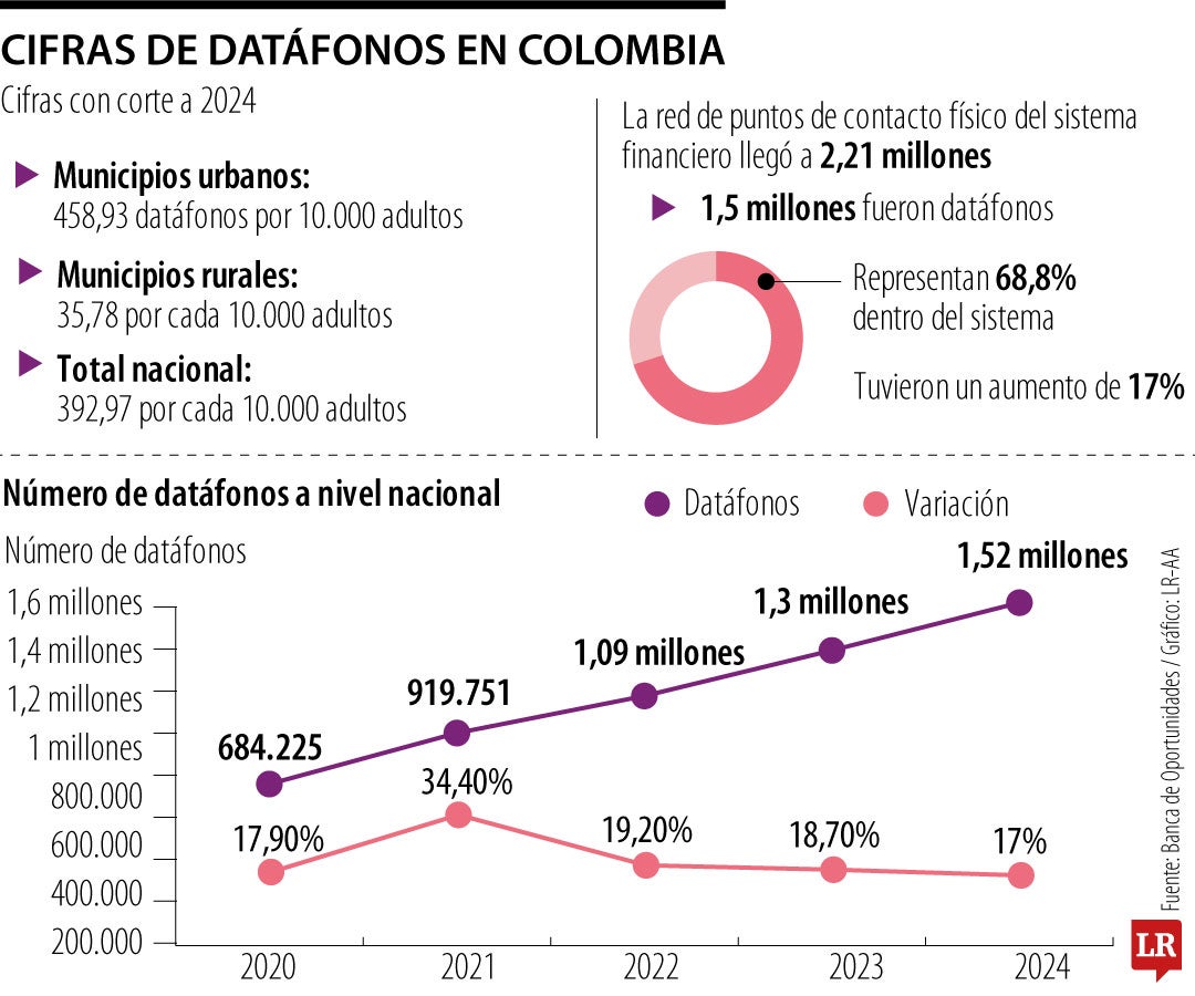 En el país, el uso de datáfonos es de 392,9 datáfonos por cada 100.000 adultos; el país cuenta con 1,5 millones de dispositivos