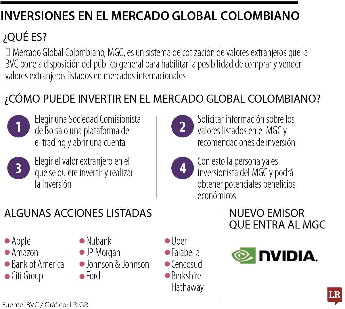 Una de las opciones que tiene la Bolsa de Valores de Colombia, BVC, para que usted pueda invertir en acciones es el llamado Mercado Global Colombiano, MGC, este se basa en una sección especializada del mercado bursátil que permite la negociación de valores internacionales, donde figurará una nueva compañía: el gigante tecnológico, Nvidia.