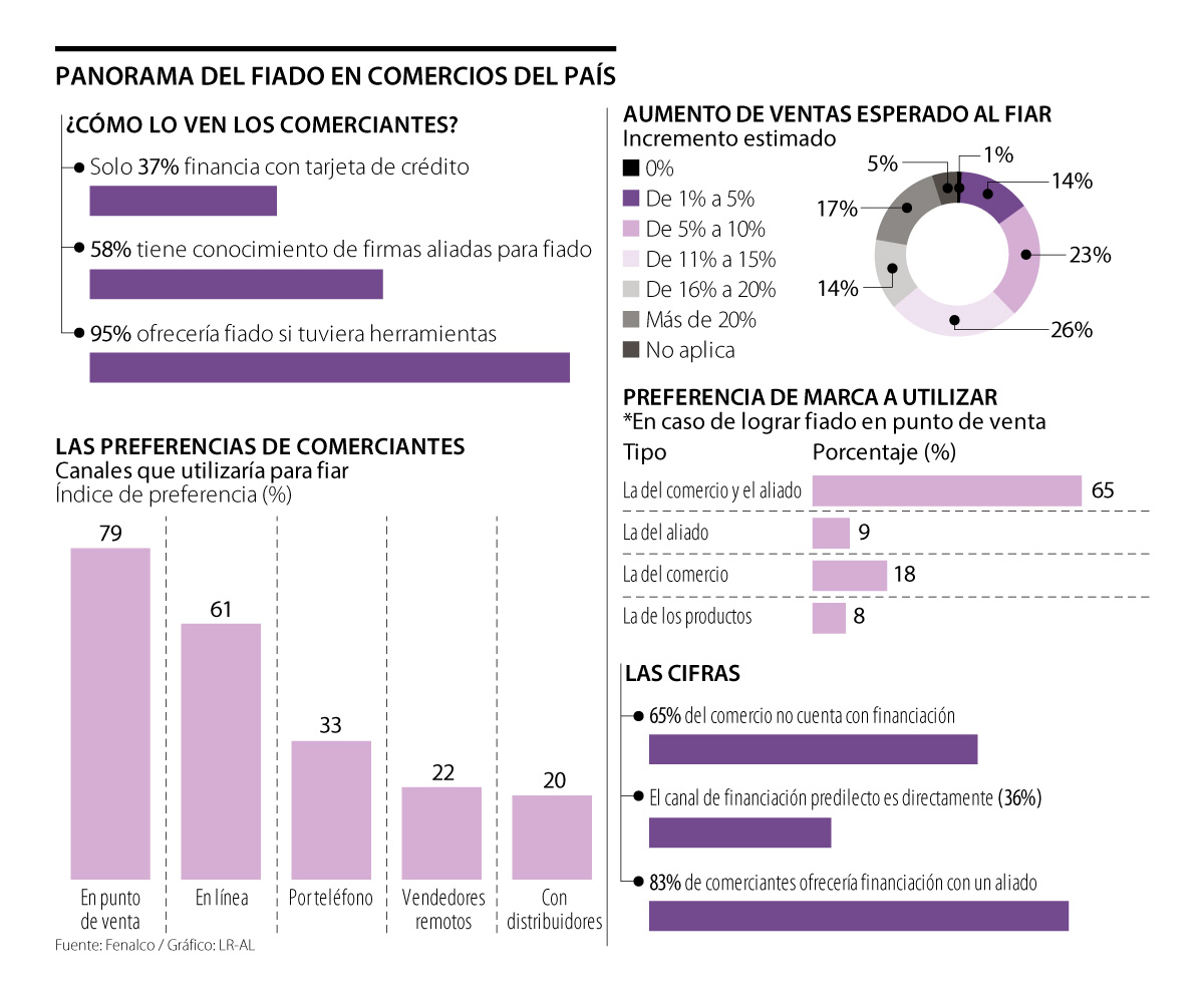 Esto se debe a que el fiado ya no se entiende como el cuaderno donde el comerciante anota las cuentas y ha evolucionado a los servicios que diferentes asociados del sector financiero le ofrecen a las empresas; uno de ellos es la tarjeta de crédito, sin embargo, este está implementado solo en 37% de los comercios encuestados por la Federación.