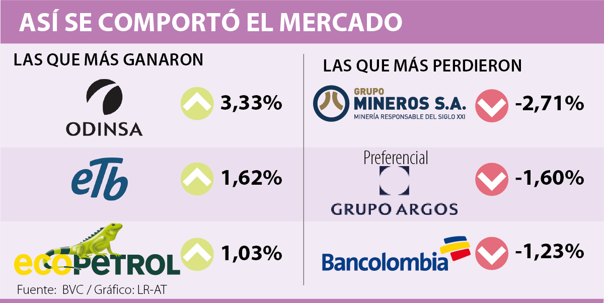 A ella le siguió el título de ETB que avanzó 1,62% cotizándose así en $503 por acción, de cerca apareció Ecopetrol que tuvo una variación positiva de 1,03% por lo que cada papel se negocia a $1.465.
