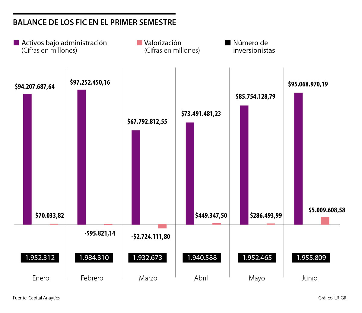 De acuerdo con información disponible en Capital Analytics, al 30 de junio los FIC tenían 1,96 millones de inversionistas, 42.398 más de los que se registraron el 31 de diciembre del año pasado (1,91 millones).