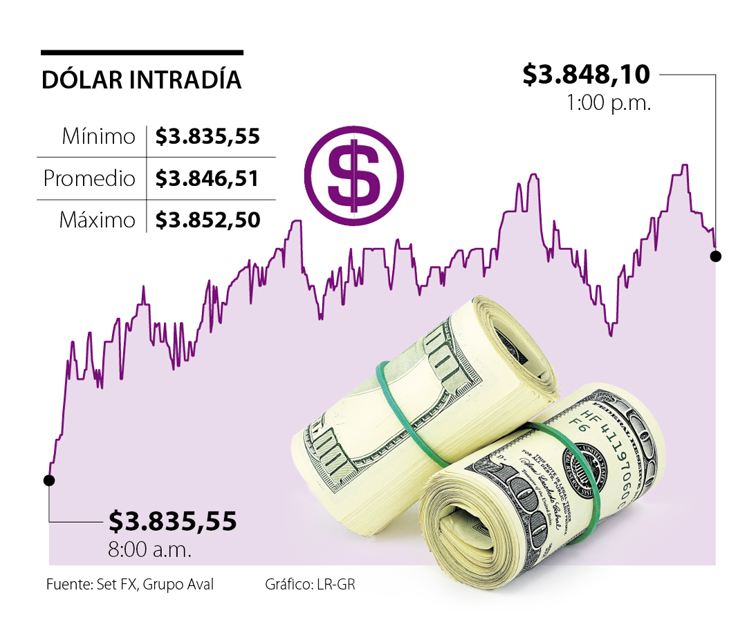 El viernes, el dólar registró un precio promedio de negociación de $3.846,51, lo que representó una caída de $7,96 frente a la Tasa Representativa del Mercado (TRM), que se ubicó en $3.854,47.