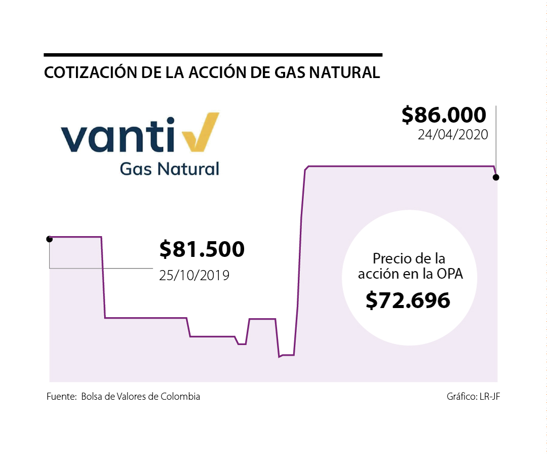 Vale recordar que esta OPA es de desliste, pues a finales de febrero, la Asamblea extraordinaria de accionistas de la empresa de gas aprobó deslistar la especie de la Bolsa de Valores de Colombia.
